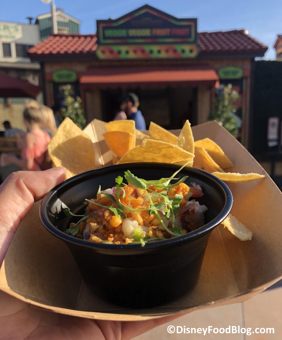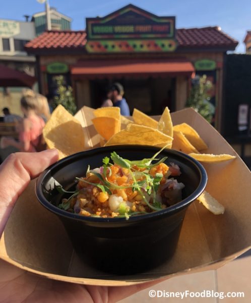- Cauliflower Ceviche with Chile Corn Crumble and Tortilla Chips – $6.25