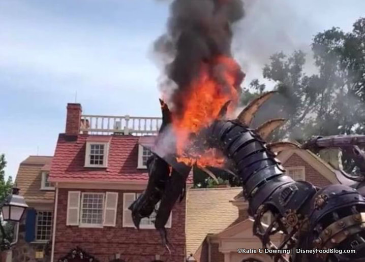 The popular Maleficent Dragon float in Magic Kingdom's Festival of Fantasy Parade caught fire during...