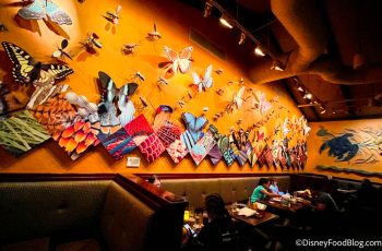 2022-wdw-dak-tiffins-restaurant-review-dining room-atmo-art-butterflies By Sara McOmber Leave a Comment
