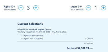 disney world park tickets calendar cost october 2022 4-day ticket october 28th park hopper total price cost By Sara McOmber Leave a Comment
