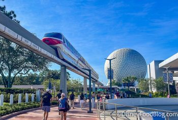 wdw 2022 epcot entrance parking lot spaceship earth monorail crowds stock-2 By Lydia Storks Leave a Comment