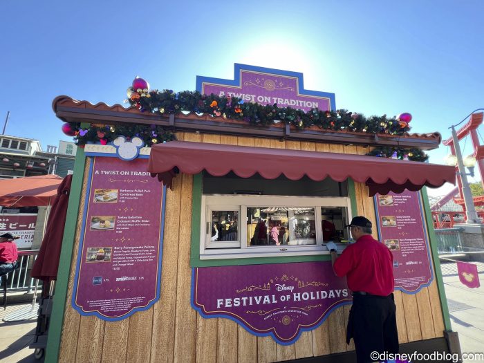 Set up throughout Disney California Adventure, individual kiosks offer dishes and drinks that commemorate all of the diverse ways that we celebrate the Winter Holidays.