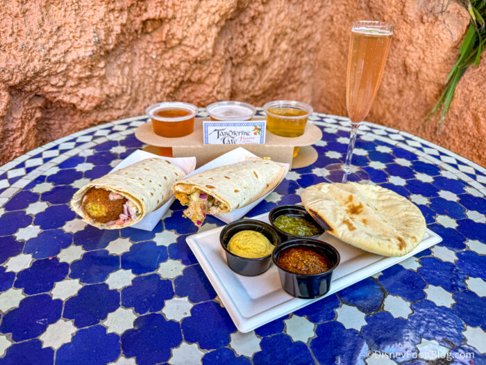 - Stone-baked Moroccan Bread with assorted dips; $5.25, Disney Dining Plan snack credit eligible