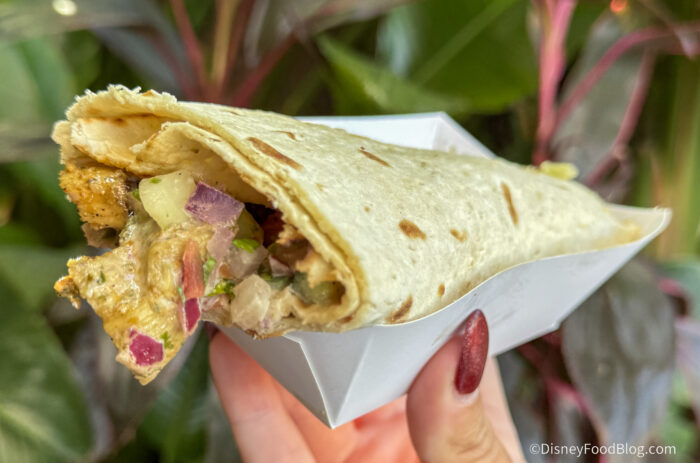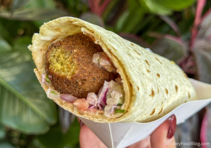 - Moroccan Wrap with tomato-cucumber relish and garlic sauce served on warm Moroccan flatbread; $6.25, Disney Dining Plan snack credit eligible