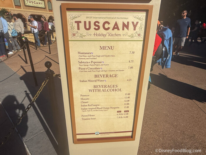 - Montanara: Fried house-made pizza dough with pomodoro sauce, Parmesan, and fresh basil — $7.50; Disney Dining Plan snack credit