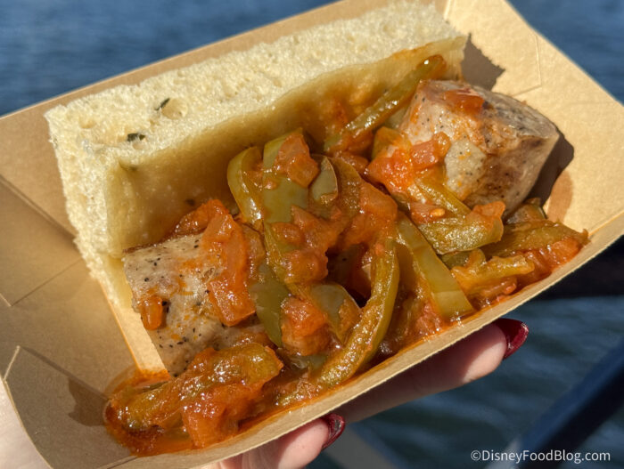 - Salsiccia e Peperoni: Sweet sausage, roasted peppers, and focaccia (New) — $8.75; Disney Dining Plan snack credit