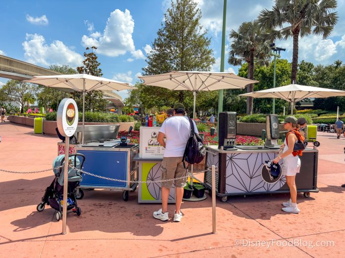 The Outdoor Vending Cart by the Seas Pavilion might look like your typical snack cart, but we have some of our favorite treats here before running off to cool off inside The Seas aquarium in EPCOT.
