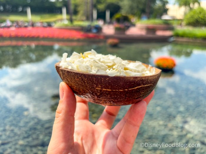 While we love our DOLE Whip and this snack definitely reminded us of it, it’s pretty challenging to find DOLE Whip in EPCOT, so we’re glad to have this sweet treat to give us the same flavors.