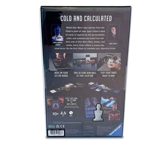 This game is a new expansion/standalone addition to the Ravensburger Villainous line of games that introduces both Grand Admiral Thrawn and Count Dooku for the first time. This version of the game is ONLY available at Target and includes an exclusive sleeve and Grand Admiral Thrawn mover with a pearlescent finish.