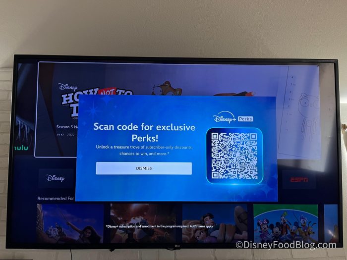 While we were watching TV, a QR code popped up that said, “Scan code for exclusive Perks!”