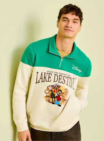 You’ll find Max and Goofy on the front with “Enjoy the serenity of Lake Destiny” embroidered. The green and tan colored quarter zip makes this an easy bag to throw into a bag or keep in the car when you need an extra jacket.