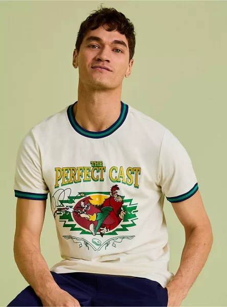 This shirt gives off summer camp vibes and features Goofy fishing on it! If we had to pick one piece, we’d wear this all summer long, especially on camping trips. We love that the ringer collars are striped blue and green, too.
