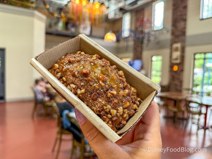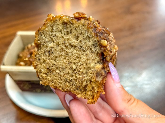 For dessert, we grabbed the Banana Bread with Praline Topping for $5.49. This treat helped our meal take a turn for the better again!