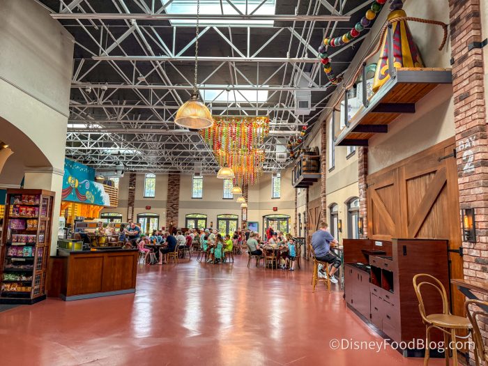 This counter-service restaurant is located in the same building where you check in for your stay. You’ll pass by the incredible beignets at Scat Cat’s Club and head to the right to a food court-style spot.