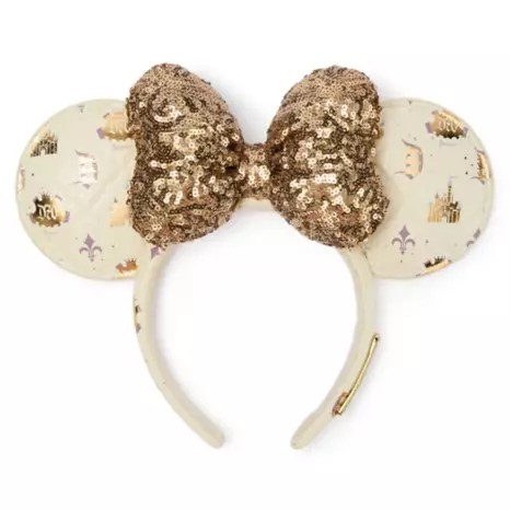 Finally, we also spotted these stunning Minnie Mouse Ears that are celebrating Disneyland’s 70th Anniversary. The ears are covered in a golden pattern featuring Disneyland’s logo and the Sleeping Beauty castle. Plus, the ears feature a gold sequined bow front and center. These are perfect for celebrating 70 years of Disneyland!