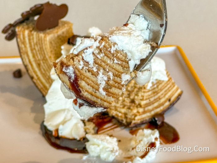 Our first thought on the changes is that this is seriously cute! We loved the changes; however, taste-wise, it’s pretty similar to its predecessor. The whipped cream and ganache made up for any dryness you might have had in the previous version. The Mickey motif is so cute, but he does melt pretty quickly in the heat, so be prepared.