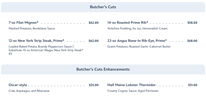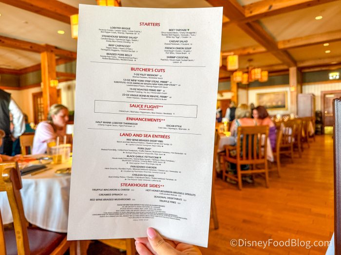 It’s also been one of our favorites to recommend over the years for your visits to Disney World! We’ve found the steaks here to be some of the best on property, and the service is often excellent, so when we spotted a few recent changes to their menu offerings, we knew we needed to investigate to be sure they aligned with our current recommendations for this restaurant.