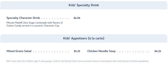 There are even several options to choose from for kids, like a specialty drink, appetizers…
