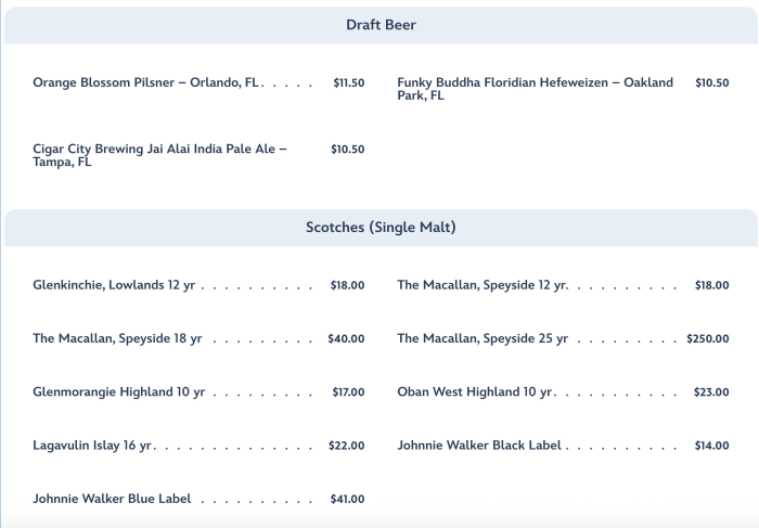 Draft beer and an array of scotches…