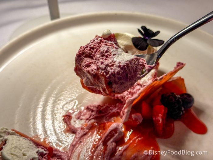 The berry flavor was strong! It felt like they used every type of berry they could find, and we were eating it up. From the crunch, the light whipped cream, and the bite of the berries, we were in heaven.