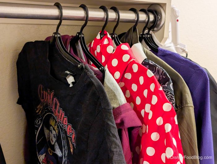 They’ve got a non-slip texture, so your wet shirts won’t slide right off. They come in a 10-pack, fold down super small, and are perfect for Disney trips, cruises, RVs, or even just organizing your suitcase outfits once you arrive.