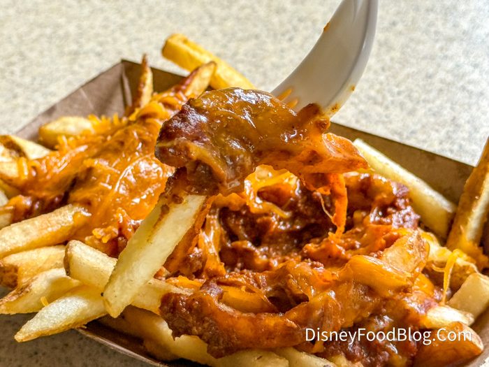 If we’re being honest, these didn’t change too much in flavor. The chili still tasted like chili, and there was still cheese. The chili was similar to Walt’s Chili in Magic Kingdom and Casey’s Corner Chili. If we’re being real, we didn’t mind the change too much!