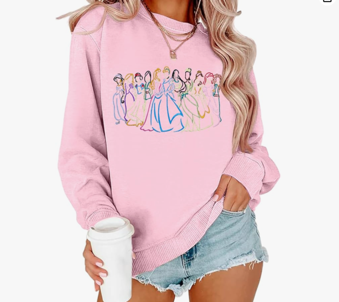 Looking for some new Disney-inspired outfits? Check out this BANGELY Magical Embroidered Sweatshirt with the Disney Princess silhouettes on the front. This would be great for a chilly day in the parks! It’s available for 46% off right now.