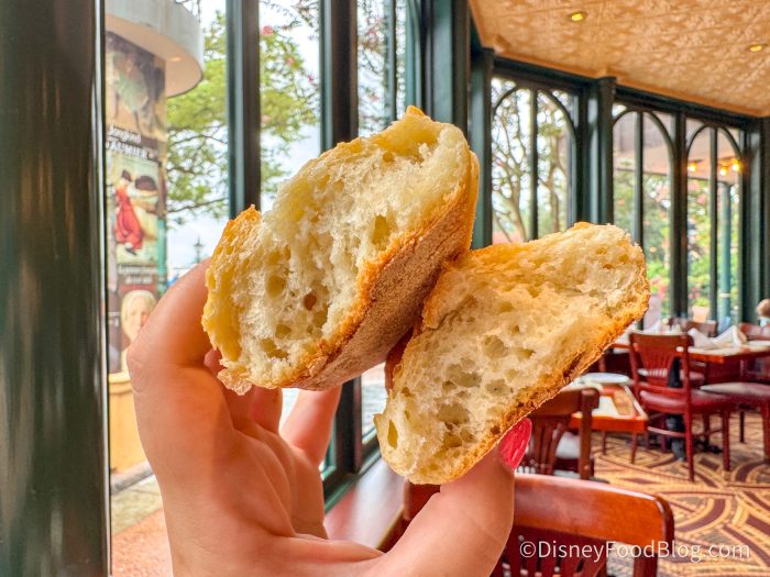 You get a whole baguette with a light, sourdough-like tanginess, served with butter and chunks of salt. The bread is nice and crispy, but the inside is so soft and fluffy, and the contrast of the two textures gives it a great chew. The bread is baked fresh from Les Halles, also located in the France Pavilion, and you can taste the freshness.