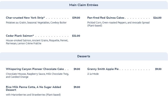 If you decide not to grab an all-you-can-eat skillet, there are also three entrees available. You can get the Char-crusted New York Strip, the Cedar Plank Salmon, or the Pan-fired Red Quinoa Cakes. You can finish off your meal with a dessert like the Whispering Canyon Pioneer Chocolate Cake, Granny Smith Apple Pie, or Rice Milk Panna Cotta.