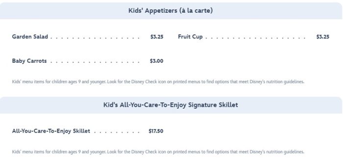 There are also options for the kiddos! They can choose from three appetizers, and they can get an all-you-can-eat skillet as well.