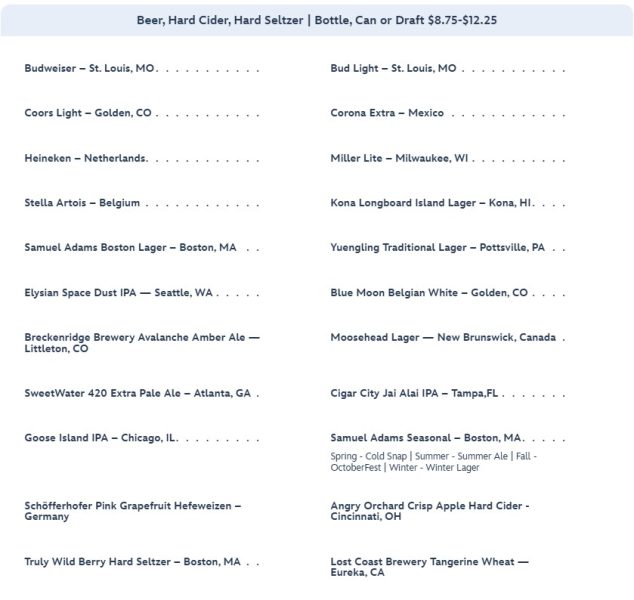 It also offers a variety of beers, hard ciders, and hard seltzers.