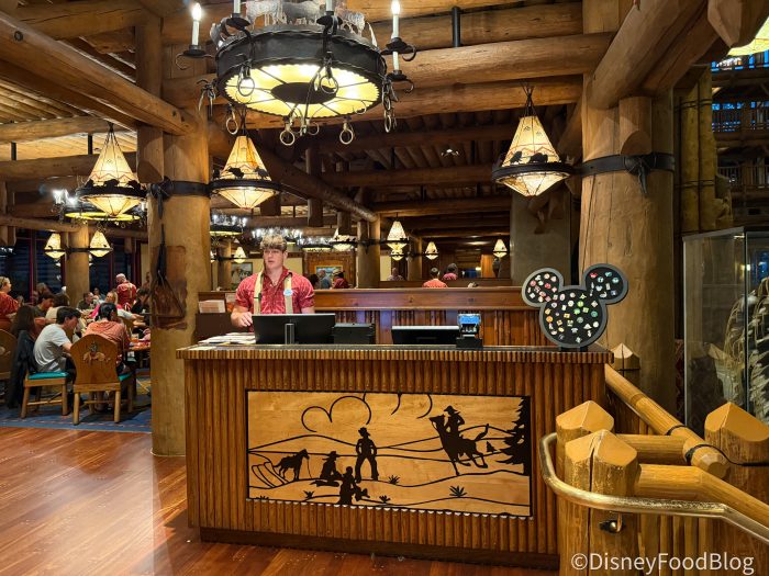 You will find Whispering Canyon Cafe in the lobby of Disney’s Wilderness Lodge. The restaurant is an open-concept restaurant, so you can see into the restaurant from the lobby, and vice versa. The restaurant is full of western vibes, from lots of wooden elements to western motifs, you really will feel like you have stepped into an Old Western log-cabin lodge.