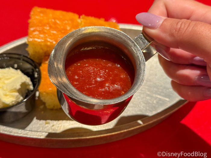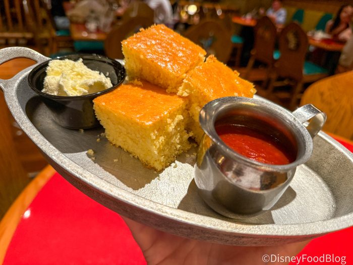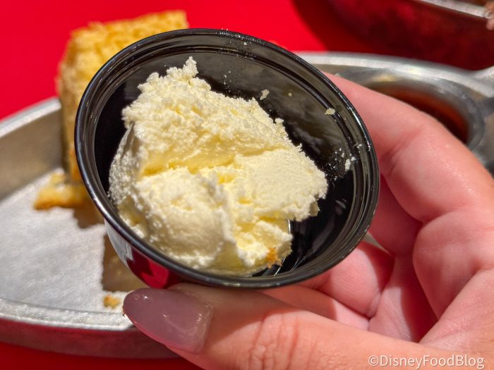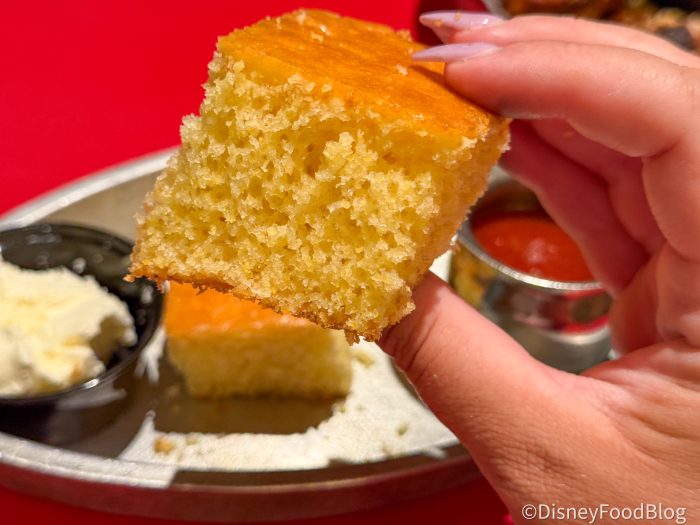 …while the light honey butter spread melted as soon as it touched the cornbread squares. Which was totally fine because they were getting popped right in our mouths for biting anyway.
