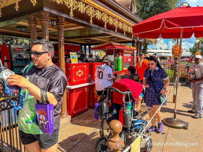 You can find it at multiple popcorn stands throughout Magic Kingdom. We personally spotted it at the popcorn stand right at the castle. While lines for this item could get longer as we get closer to the official start of the party, we found that the wait was pretty short at 4:30 PM.