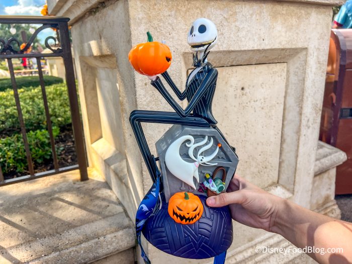 The new popcorn bucket available is The Nightmare Before Christmas Jack Skellington Gravestone Bucket! It features Jack Skellington with a jack-o-lantern in hand as he sits on a tombstone.