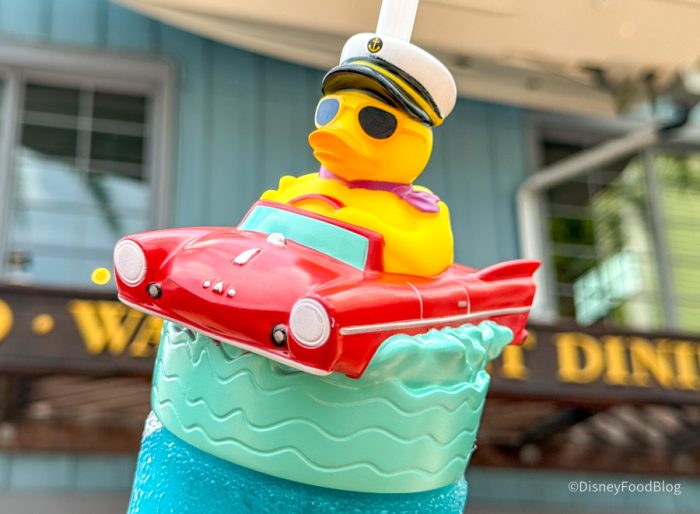 It’s basically an alcoholic blue raspberry slushie, served chilled in a fun souvenir cup. If you’re wondering what it tastes like before you commit to it, we’ve got you covered! It’s got a light alcoholic taste with a twinge of that tangy raspberry flavor to it that’s not super sweet. The Frozen Duck Duck Razz Slush is a drink that you can sip while you shop till you drop, and it makes for a great souvenir to take home with you. You’ll find the top lid is decked out in the restaurant’s signature rubber duck sporting a cool set of shades while cruising along on the infamous amphicars you can take a ride in while visiting.