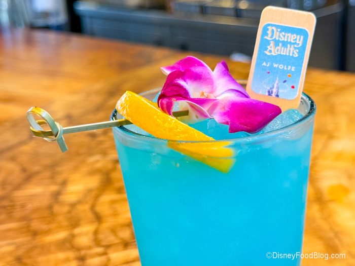 Did you spot the Disney Adult goodies that come with it? You’ll find AJ’s book cover at the top of your drink next to that popping purple orchid garnish, and you’ll even be served a Disney Adults balloon coaster (we wouldn’t blame you if you wanted to take them both home as souvenirs, either).