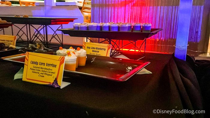 The treats are all you can eat, and they are served buffet style. The food options are definitely heavy on the sweets, but you can grab some crackers and cheese or Trick or Treat Mix if you are looking for a savory option. Amongst the buffet, you can find your classic bakery items like cookies and brownies, and then there are also some specialty items to choose from. During Disney’s Not-So-Spooky Spectacular Dessert Party, you can even grab some fun, Halloween-themed desserts!
