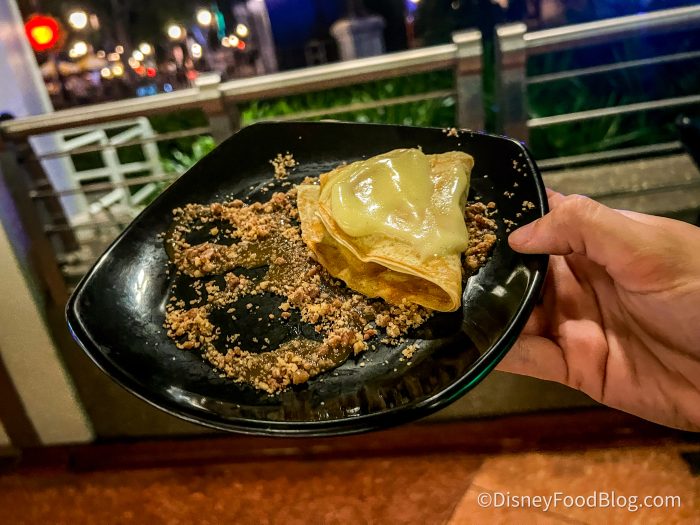 We also grabbed a Caramel Apple Crepe. This crepe was thick and while it had the flavor of caramel apple, we weren’t the biggest fans. It was almost too much, and it ended up tasting a bit like eating a candle instead of a crepe.