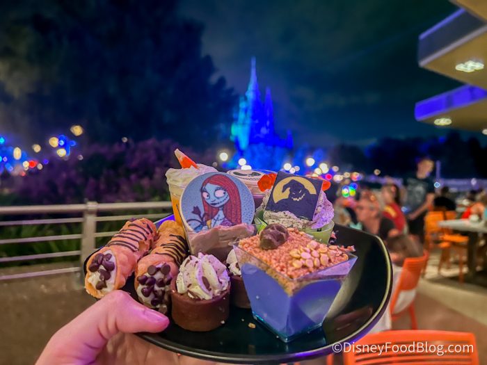 With the dessert party, you get to enjoy the Disney’s Not-So-Spooky Spectacular fireworks show from the comfort of Tomorrowland Terrace with all your goodies. It was definitely a much more relaxing experience to be at a reserved table and out of the chaos that can happen around Cinderella Castle. You get a good view of the fireworks, and you can easily hear the soundtrack! Honestly, we wish you could pay just for the reserved seating and skip over the all-you-can-eat desserts.