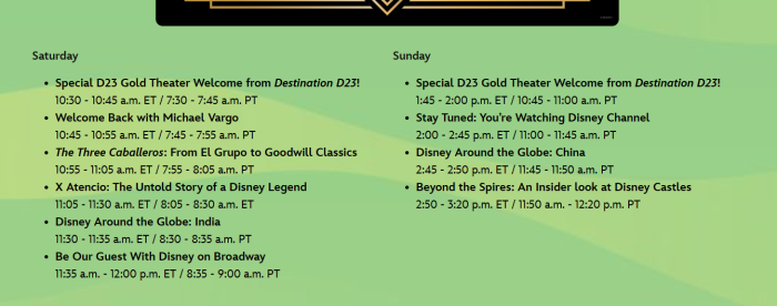 Want to see ALL the panels happening at D23 if you’re headed there yourself, or if you just want to know what’ll be going on both days? There are 13 offerings/events on Saturday and 11 on Sunday. This event isn’t as large as the D23 Expo that happens every other year in California, but we’re still expecting to learn a lot about what Disney has coming up!