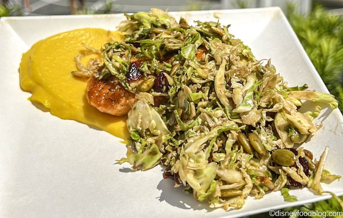 You’ll find Bramblewood Bites along the pathway towards World Showcase coming from World Celebration. Once again, autumnal flavors are featured here, with the returning Grilled Cider-brined Pork Tenderloin and Cast Iron-roasted Brussels Sprouts and Root Vegetables. These dishes are joined by the new Cast Iron-seared River Trout this year.