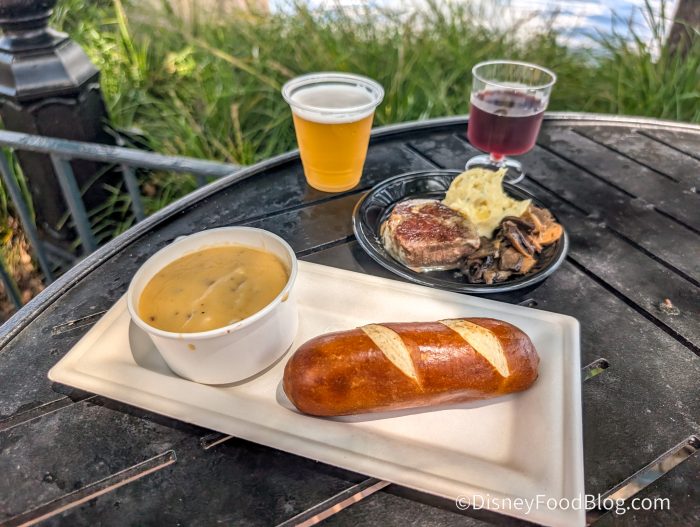 Over at the Canada booth, you’ll find a familiar list of options. The same classics have been served for a few years now; there are only two food items on the menu again this year, and both are returning favorites: the Cheddar Cheese and Bacon Soup and the Filet Mignon. If it ain’t broke, don’t fix it, right?