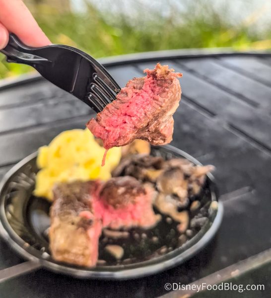 The fragrance wafting from the Canada Booth is enough to draw in many guests, and that’s thanks in no small part to the Filet Mignon. It’s plated with mushrooms and Boursin Garlic & Fine Herbs mashed potatoes, and is finished with Boursin Garlic & Fine Herbs butter for $10 (a slight increase from last year’s $9.75, but still a solid use of a Dining Plan Snack Credit).