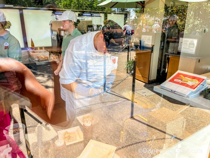 New for this year is the Liquid Nitrogen Frozen Pumpkin Cheesecake Mousse, featuring Philadelphia Cream Cheese, candied pecans, and maple-caramel sauce, for $5.50. Yep, this is like Disney going EXTRA with a fun fall snack. First of all, it was so much fun to watch them prepare this treat.