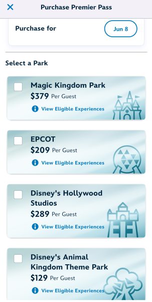 Lightning Lane Premier Pass allows a one-time entry to each available Lightning Lane experience that they can use AT YOUR LEISURE, meaning if you have it, you WON’T need to choose a specific arrival time to ride the attraction. Like other Lightning Lanes, the Premier Pass is available to purchase 7 days beforehand for Disney Hotel guests, 3 days beforehand for others.