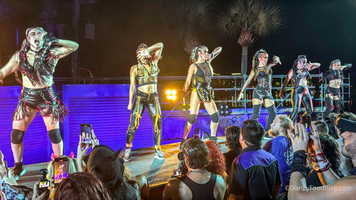 The show combines dirt bikes performing insane stunts on ramps and platforms with live heavy metal music, pyrotechnics so hot they had us worried our phone would overheat, and a cast of dancers. Havoc brings women up “from the audience” (however, they were clearly planted there, don’t worry, you’re not being pulled up on stage), dances with them, then kills them with a thrust and neck snap as the stunt riders circle and flames explode. We were blown away by the production value and the sheer audacity of it all, although we do definitely encourage that this show is ONLY for adults and older kids (we suggest 16+).