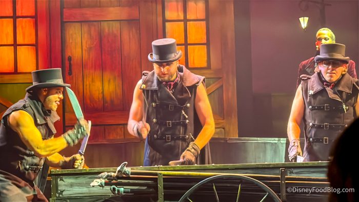 The fan-favorite show here is Monster Stomp at the Nautilus Theatre. This is a Victorian-era musical featuring Jack the Ripper, with incredible live vocals, choreography, costumes, and stagecraft. The percussion sequence where performers use knives as instruments was a major standout to us, as is the skeleton dance under blacklight.