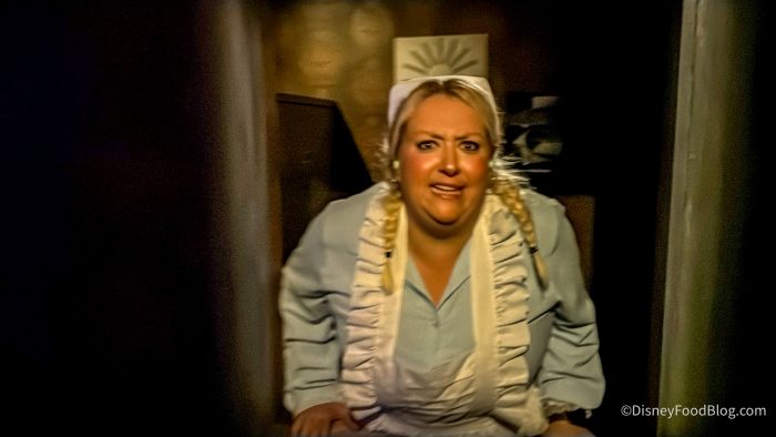 The final house is The Widow’s Nest, which is new this year. This seemed to have an orphanage theme, led by a crazed Miss Hannigan–style character (the orphanage caretaker from Annie) who kept shouting at us about why our parents didn’t want us anymore. It was weirdly hilarious and creepy all at once, and that balance — serious scares for thrill-seekers, but loads of camp, artistry, and humor for everyone else — again sets Howl-O-Scream apart.