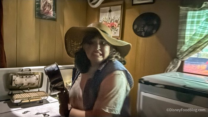 We then headed into the scare zones, which overall felt less intense this year. Some of them were so understated we didn’t notice them, but then there were new ones like Ashes of the Forgotten, Woodrot Hollow, Trailer Park Tragedy, and Echoes in the Glass that made their mark. Our favorite was Trailer Park Tragedy, which leaned hard into humor, as it’s a run-down trailer park with scare actors in white tank tops and Southern accents, lugging tires around pickup trucks and broken trailers. It was absurd, hilarious, and totally worked!